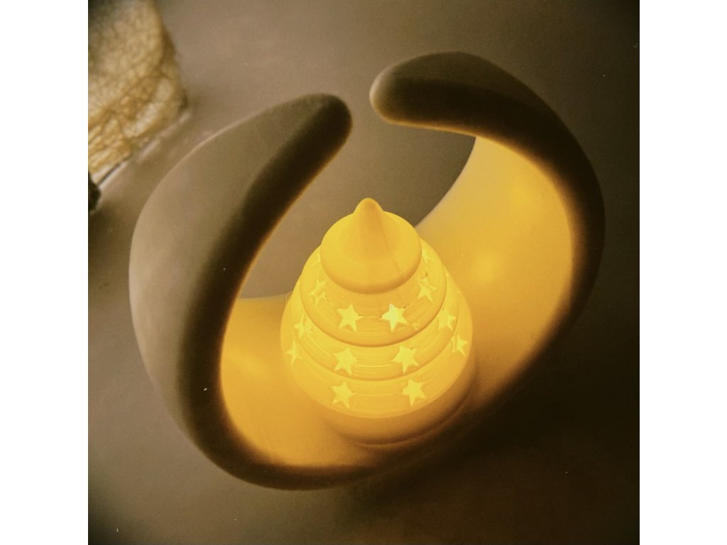 3D tlačená vianočná dekorácia, ktorá po vložení elektronickej čajovej sviečky svieti