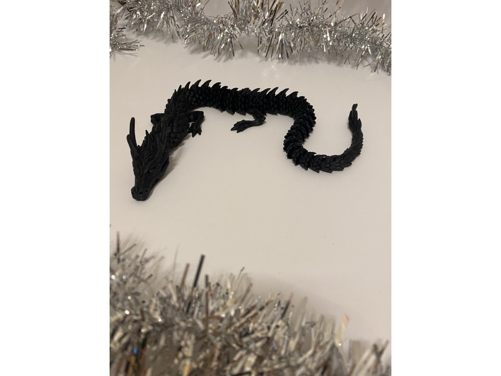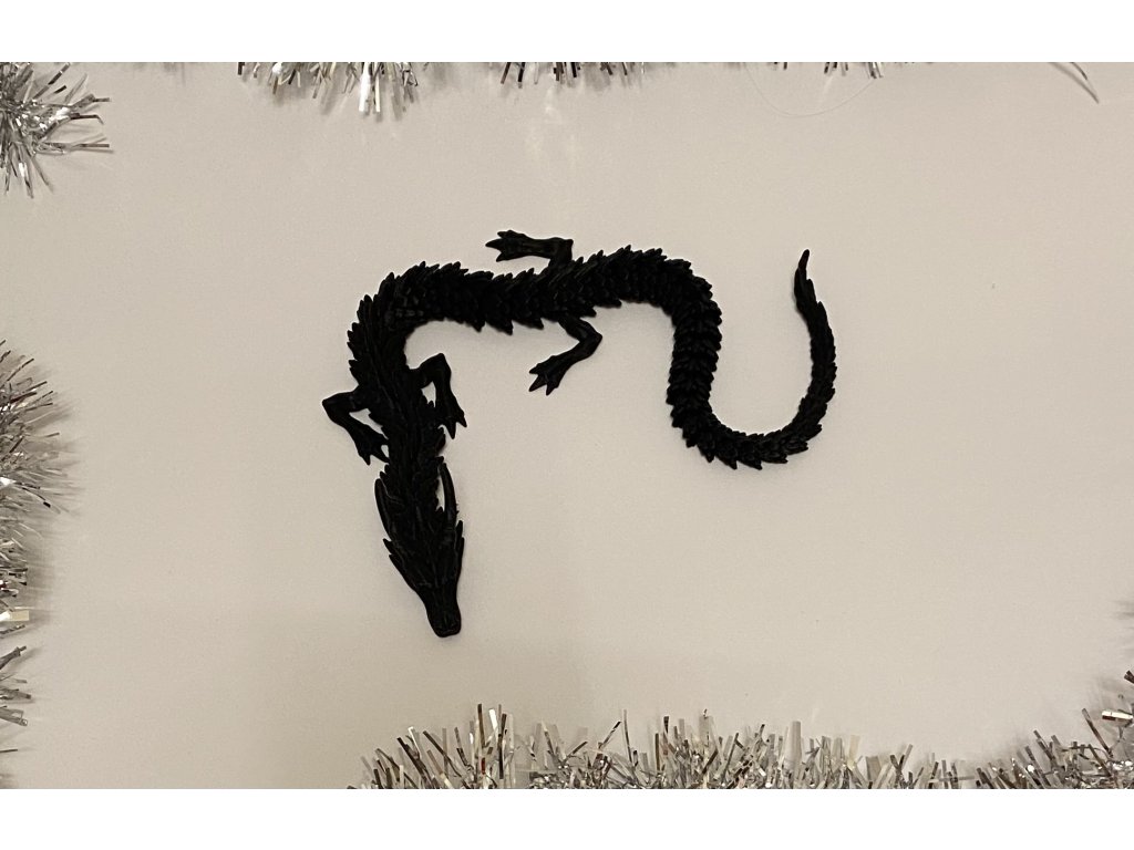3D Tlačený drak v čiernej farbe v malej veľkosti. Možnosť výberu farieb z : čierna, zelená, červená, ružová, fialová, hnedá