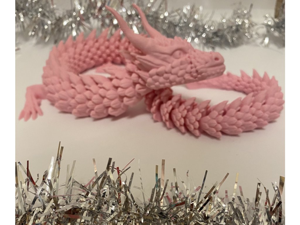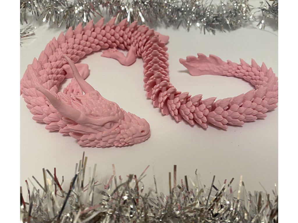 3D Tlačený drak ružovej farby vo veľkej veľkosti. Možnosť výberu z farieb: ružová, fialová, čierna, hnedá, zelená, modrá